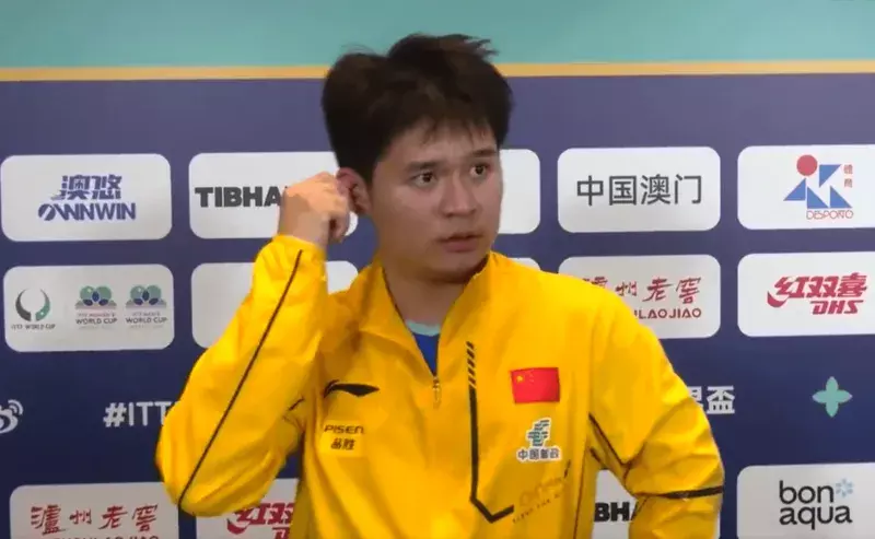 乒乓球单打天下杯一场男单1/8决赛中,林诗栋以4-3险胜瑞典选手卡尔伯格,晋级下一轮。赛后他接收了采访。