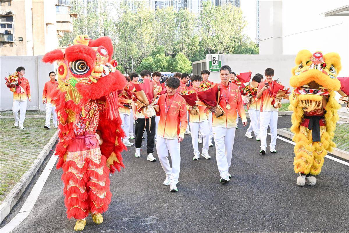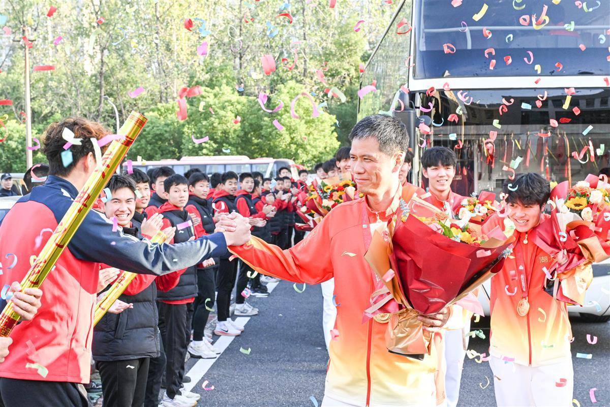 湖北队主教唆岑岭带队复返湖北省体育局足球畅通处理中心。(湖北日报全媒记者 任勇 摄)