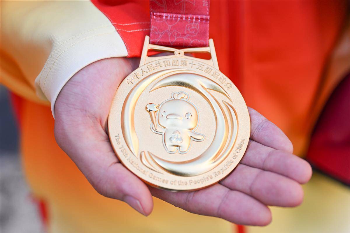 湖北队队员孙康博与全运会金牌合影。在11月12日全运会U20男足决赛中,孙康博凭借临了时分的宇宙波将比分扳平,成效扭转“战局”。(湖北日报全媒记者 任勇 摄)