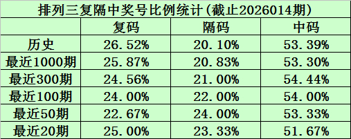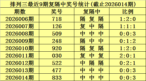 本期号码复隔中比例参考0:0:3。