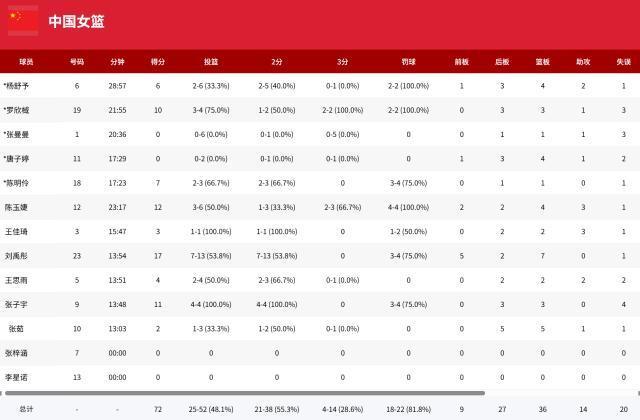 尽管得回告捷,中国女篮的问题还是较着。当天一战, 全队三分14投仅4中,送出14次助攻的同期无理了20次。上一场比赛,中国女篮三分28投5中,11助攻19无理。